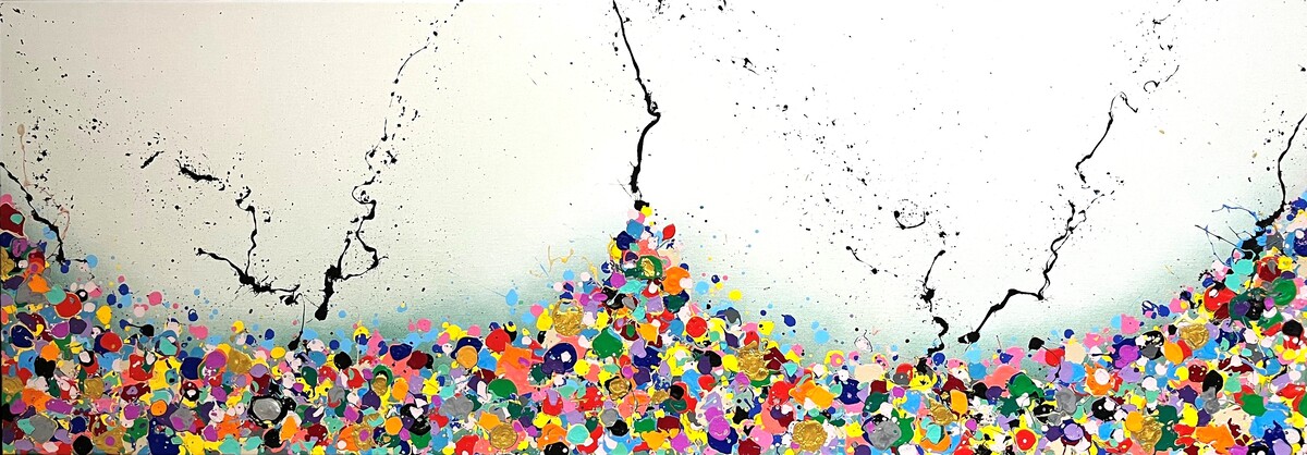 DENIS DE GLOIRE "On Turkish blue" doek 58x165cm.