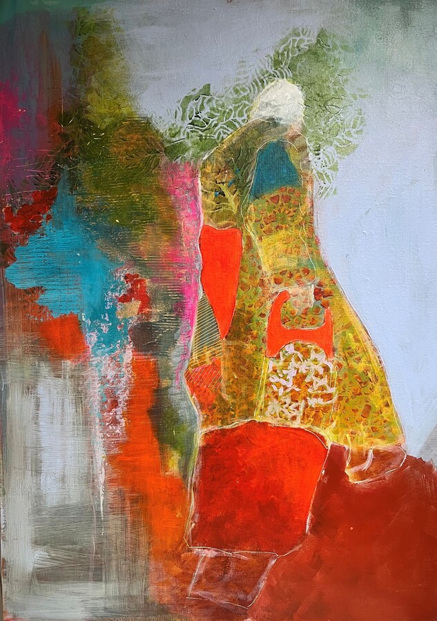 Kristel Pallemans "Dame met tas" paneel 70x50cm.