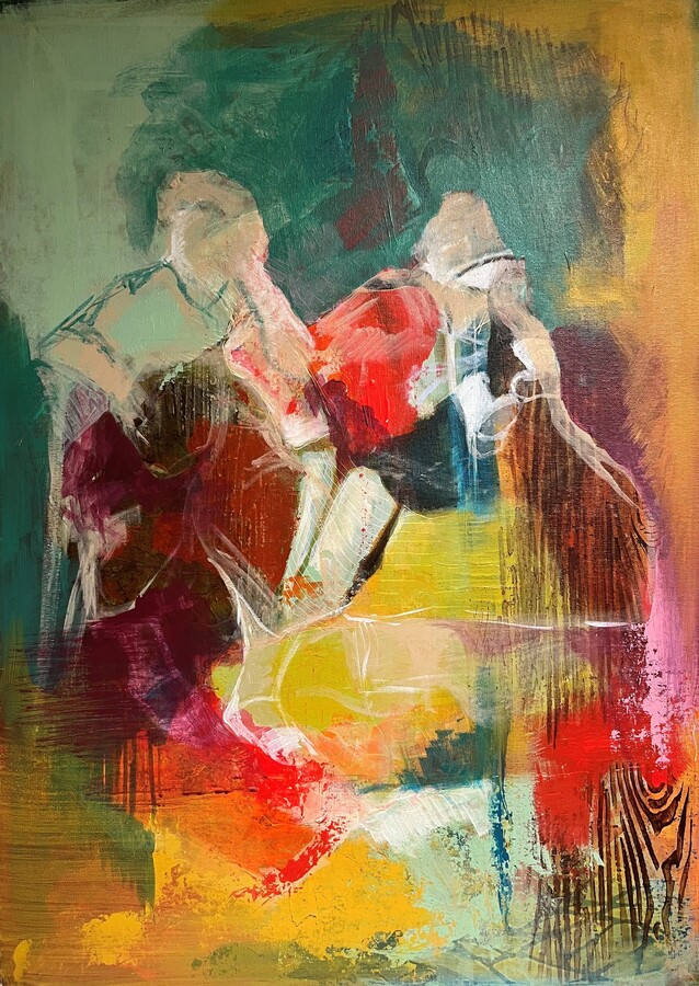 Kristel Pallemans "Twee dames" paneel 70x50cm.
